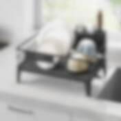 Opvaskestativ i stål med aftagelig bakke og to niveauer - Sort