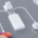 Powerbank 30000 mAh med hurtig opladning og indbyggede kabler – hvid