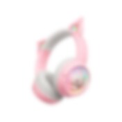 Onikuma B5 trådløst gaming-headset med katteører og RGB-belysning - pink