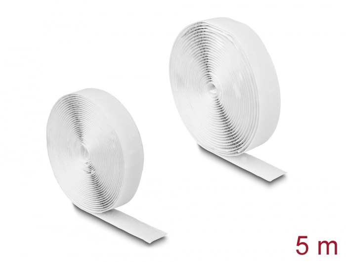 Delock Velcro tape selvklæbende med klæbemiddel og velcrobånd L 5 m x B 20 mm hvid