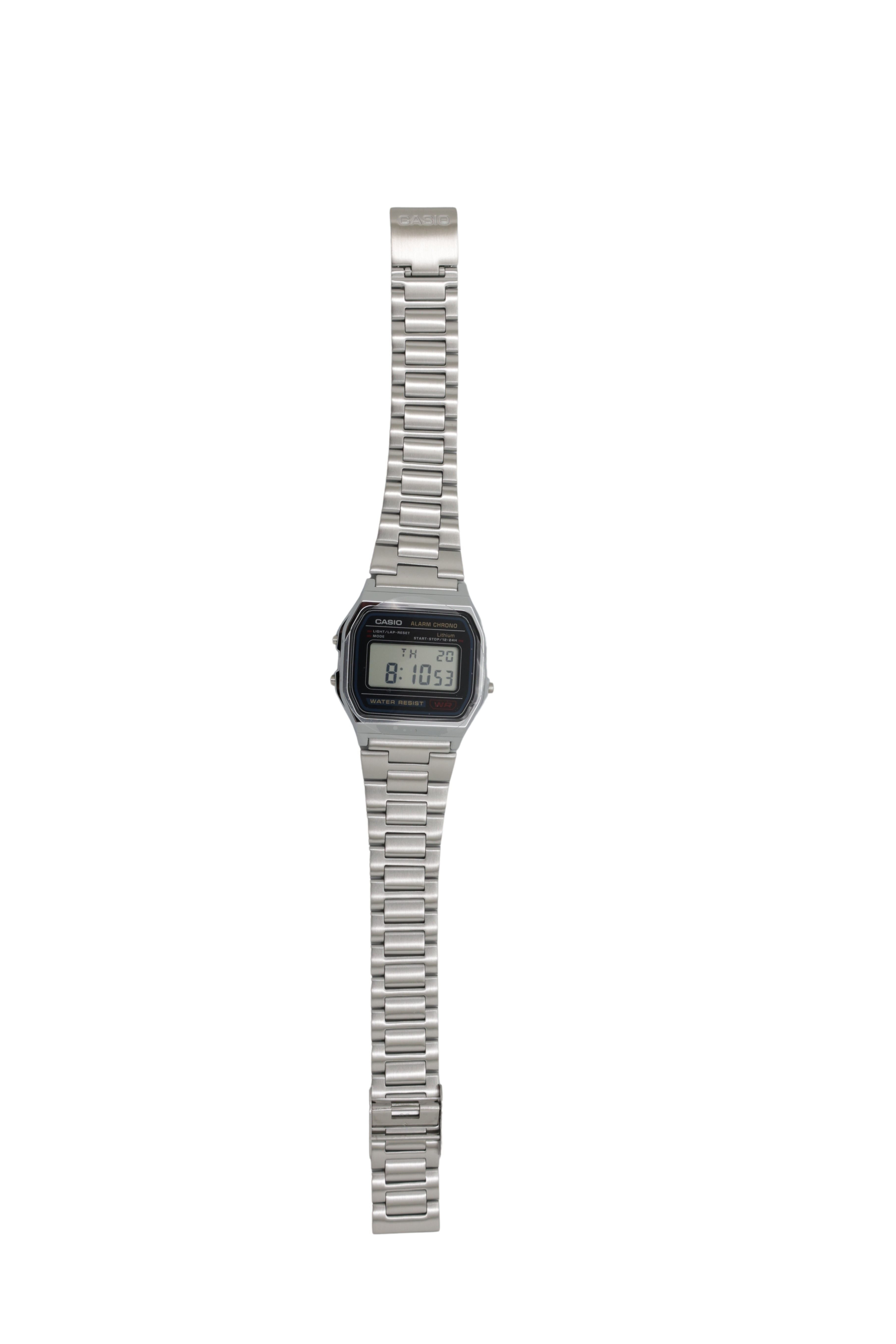 CASIO A158WA-1DF Vintage unisex digitalur med lænke i rustfrit stål, sort/sølv
