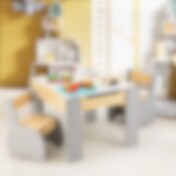 3-i-1 aktivitetsbord med to stole til børn - natur/grå