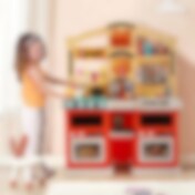 Legetøjsbutik i træ til børn fra 3 år – med indkøbsvogn, kasseapparat og kridttavle