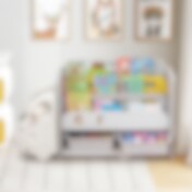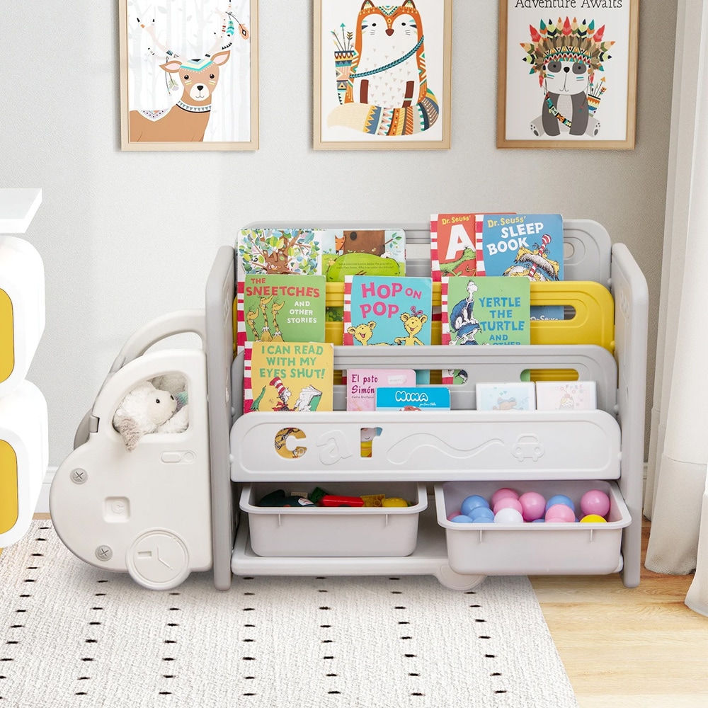 Legetøjsopbevaring med boghylde – boghylde / bilformet børnemøbel