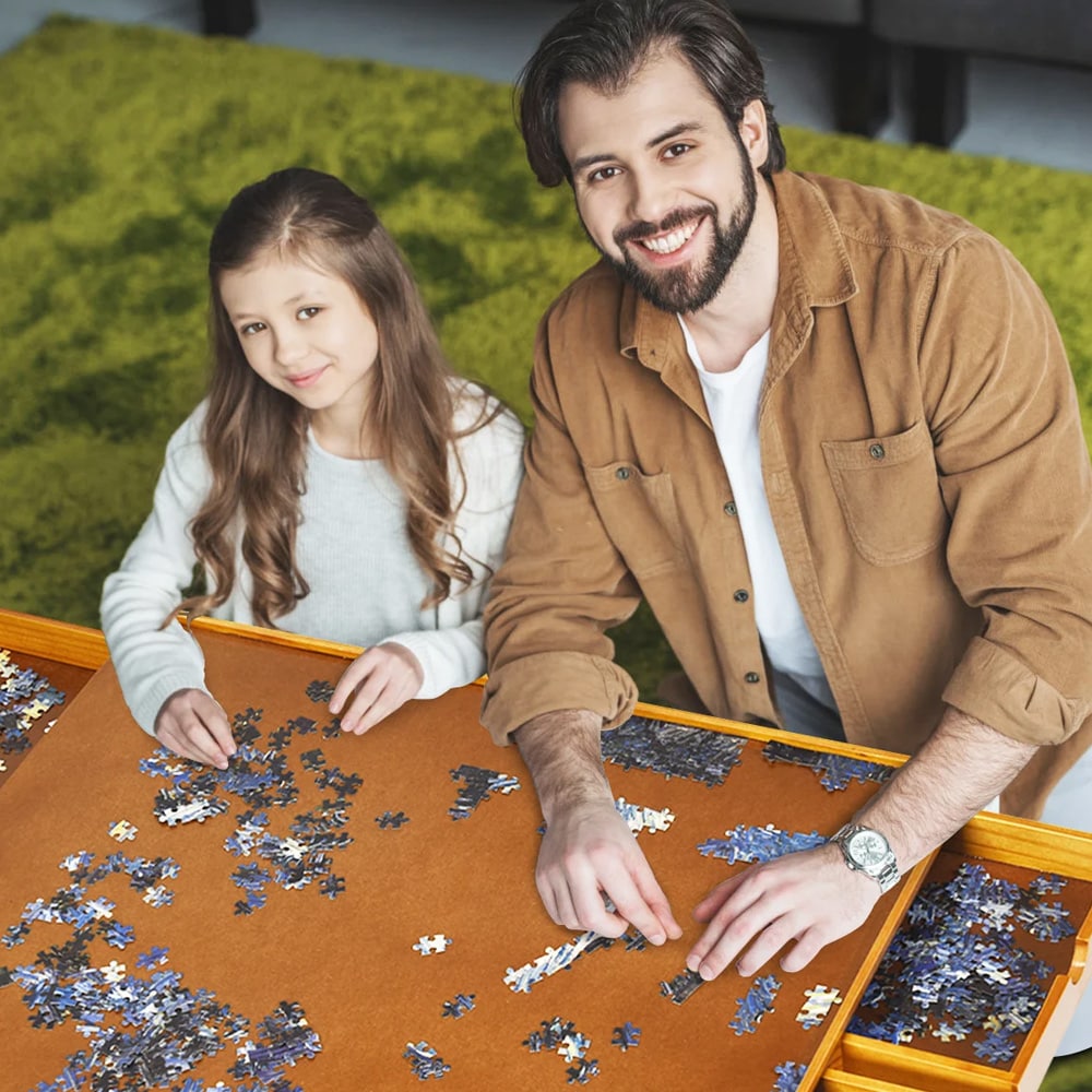 Puslespilsbord i træ 1000–1500 brikker / puslespilsbræt med skuffer og sorteringsbakker
