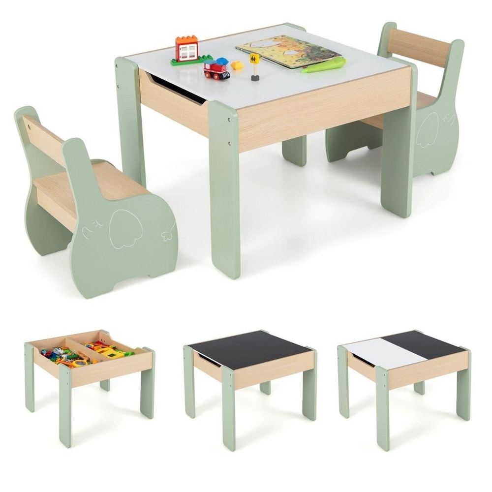 Børnemøbelsæt med 4-i-1-bord, stole og integreret opbevaring