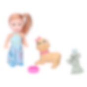 Modedukke 9 cm med hunde og tilbehør, 4 dele
