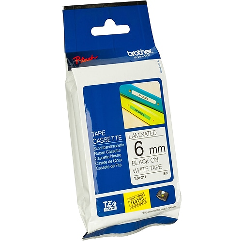 Brother skrivetape TZe-211 sort på hvid, 6 mm, 8 m, lamineret