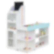 Legetøjsbutik i træ til børn med LED-belysning, indkøbsvogn og 39 stykker tilbehør - Hvid