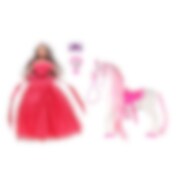 Dukke med hest - legesæt med tilbehør
