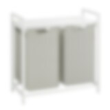 Vasketøjskurv med 2 rum og hylde - hvid/grå