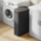 Lille badeværelseshylde med to vasketøjskurve - 92 liter - Grå / Brun / Sort