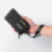 Svart pung i okselæder med RFID-beskyttelse og mange praktiske rum