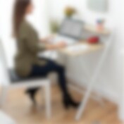 Skrivebord med egetræsfarvet bordplade og hvide ben 80 cm