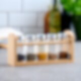 Krydderihylde i bambus med 5 glasbeholdere og aluminiumslåg