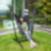 Justerbar hængekøje med stålramme - grå, med pude, lomme og mobilholder