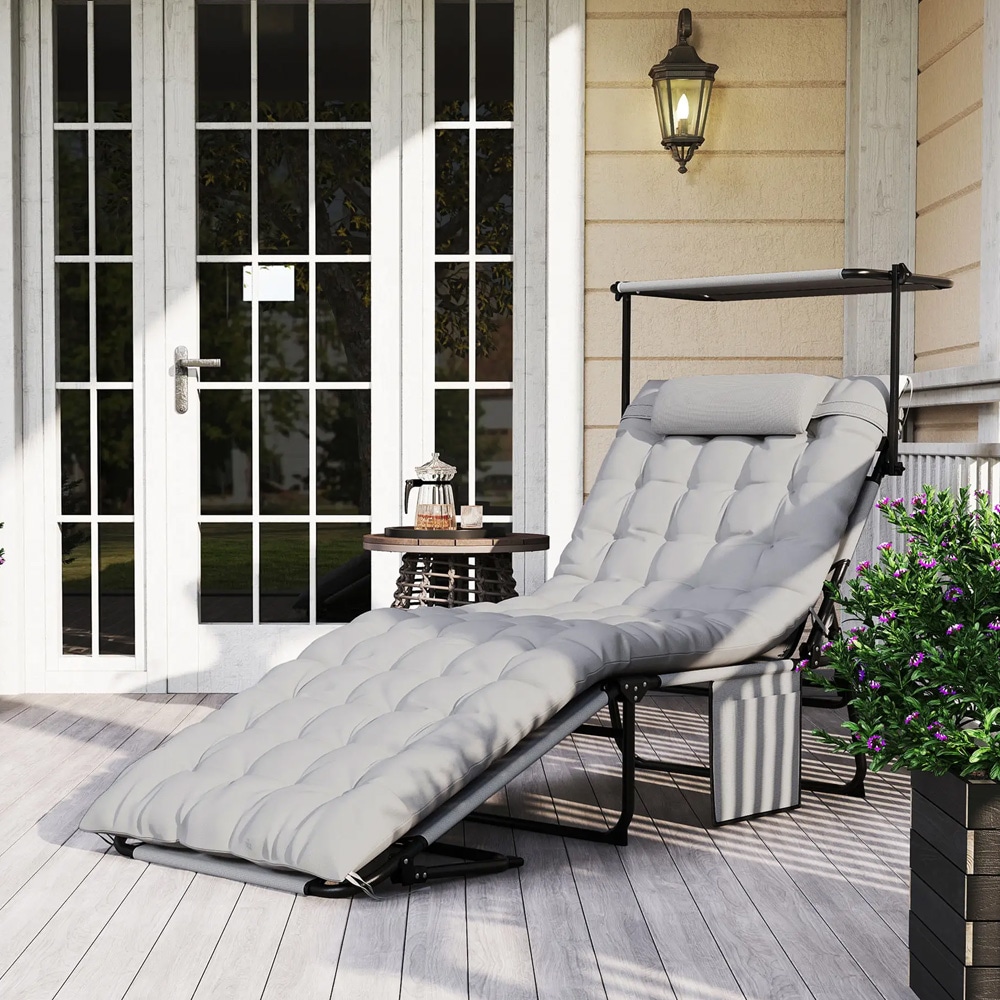 Solseng - justerbar liggestol / lysegrå solvogn med solsejl til have, strand og pool