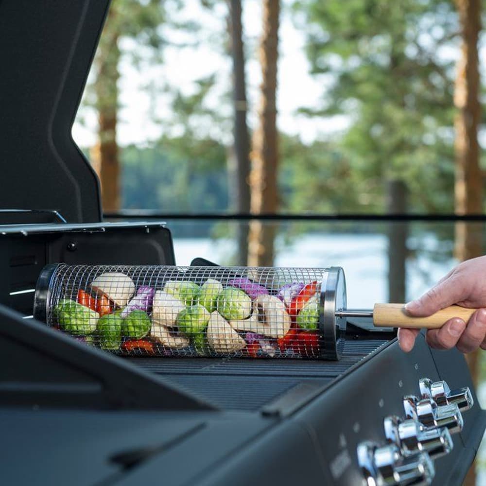 Mustang roterende grillkurv / grillkurv med rotation / grillkurv til grøntsager og små stykker