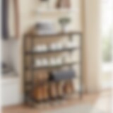 Skostativ med 4 nethylder og øverste hylde - Rustik brun / svart