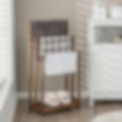 Håndklædestativ i træ med 3 stænger og hylde – rustik brun