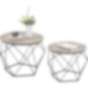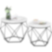 Runde sofaborde i metal - Hvid/Svart - marmordesign med stålstel