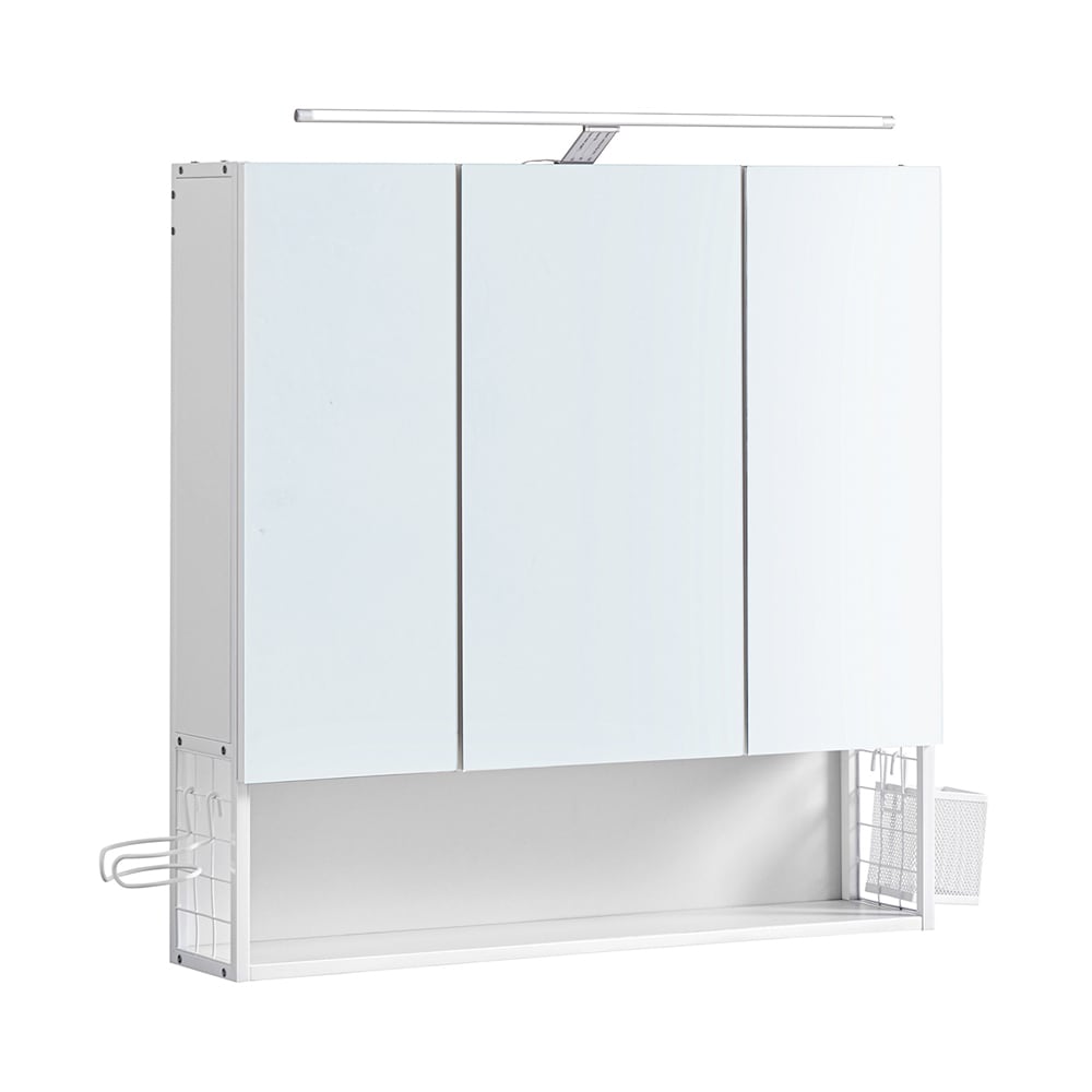 Spejlskab i træ med 3 døre, stikkontakter og opbevaringsløsninger - Hvid