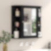 Vægmonteret spejlskab til badeværelset med opbevaringshylder - Sort