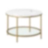 Rundt sofabord i marmorlook med glasplade nedenunder - hvid/guld
