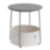 Rundt sengebord med opbevaringskurv - grå/hvid