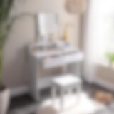 Frisørbord med spejl og 2 skuffer - Hvid