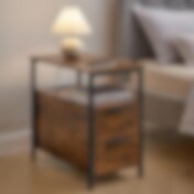 Sengebord med stikkontakt og 2 skuffer - Rustik brun/Sort