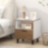 Natbord / sidebord med skuffe og hylde – Natur/hvid