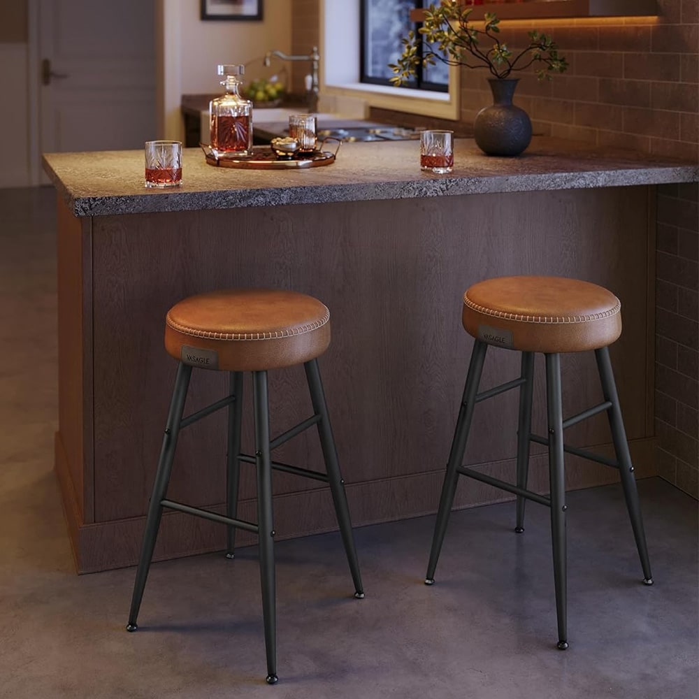 Barstole med kunstlædersæde 2-pak Brun/Sort