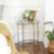Rundt sidebord Ø50 cm med glasplade og stålstel - Guld