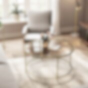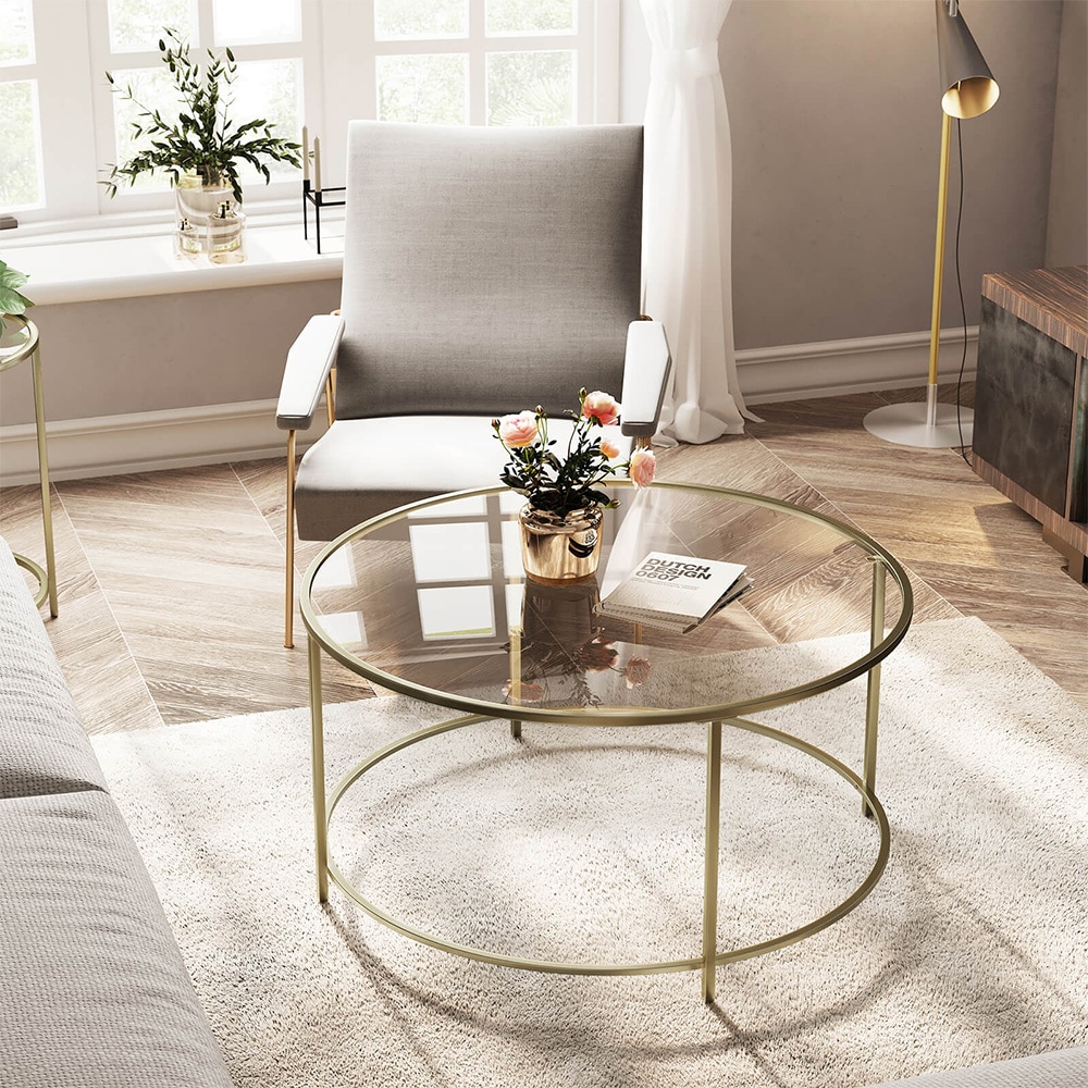 Rundt sofabord Ø84 cm med glasplade og stålstel - Guld