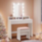 Frisørbord med LED-belyst spejl, 2 skuffer og flere opbevaringsrum - Hvid