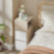 Natbord / sidebord med skuffe og hylde – Natur/hvid