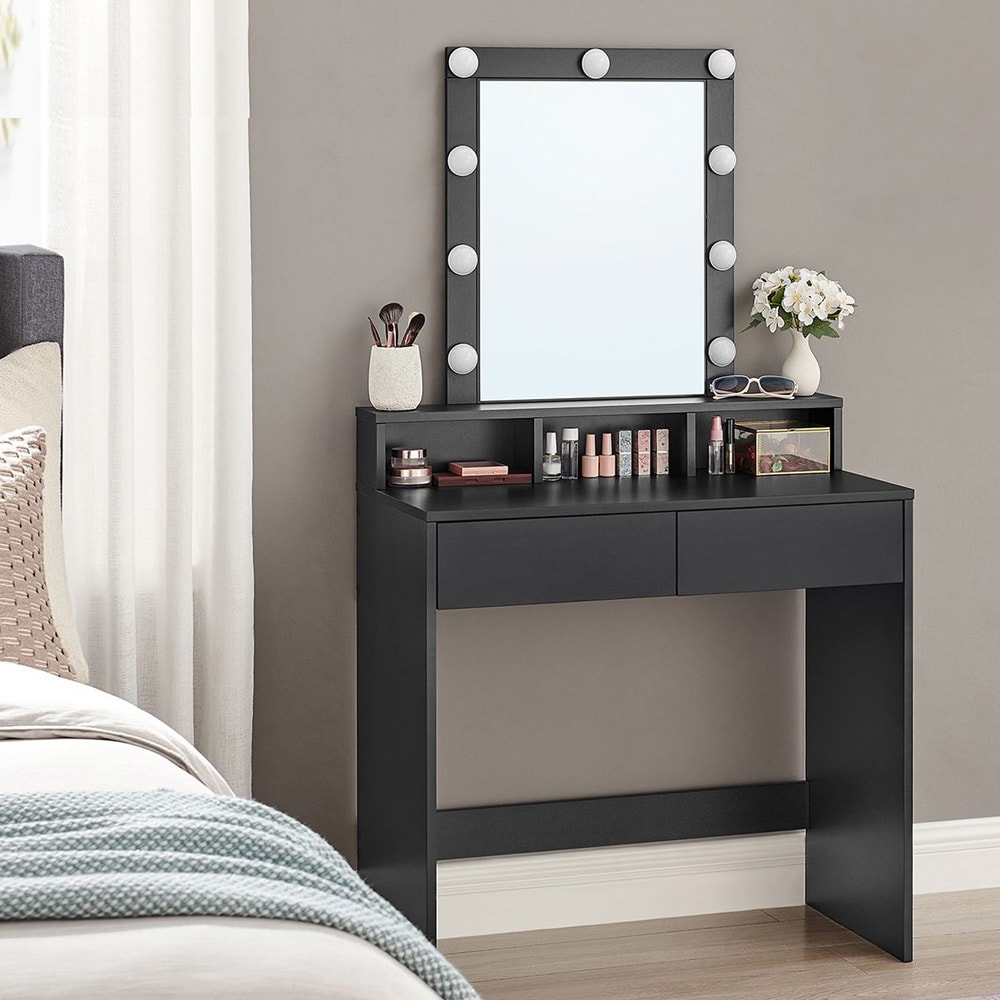 Toiletbord med LED-belyst spejl, 2 skuffer og åben opbevaring - Sort