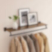 Hattehylde med bøjlestang til vægmontering 109 cm - Brun/Sort