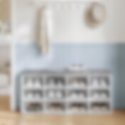 Opbevaringsbænk med polstret sæde og 9 rum - hvid/grå