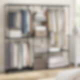 Tøjstativ i metal med 2 træhylder – Rustik brun/sort