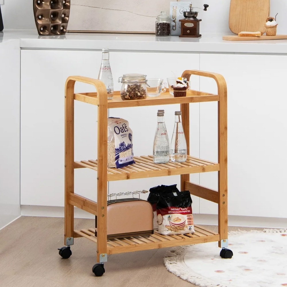 Væghængt badeværelseshylde i bambus 42 x 15 x 42 cm med tre hylder