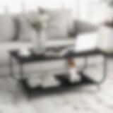 Sofabord i træ med åben hylde – Rustik brun/sort