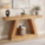 Aflastningsbord i træ med ekstra lang bordplade i moderne stil