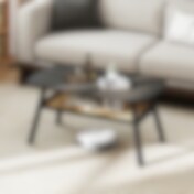 Sofabord i træ med hylder i kunstrotting - Mørkegrå