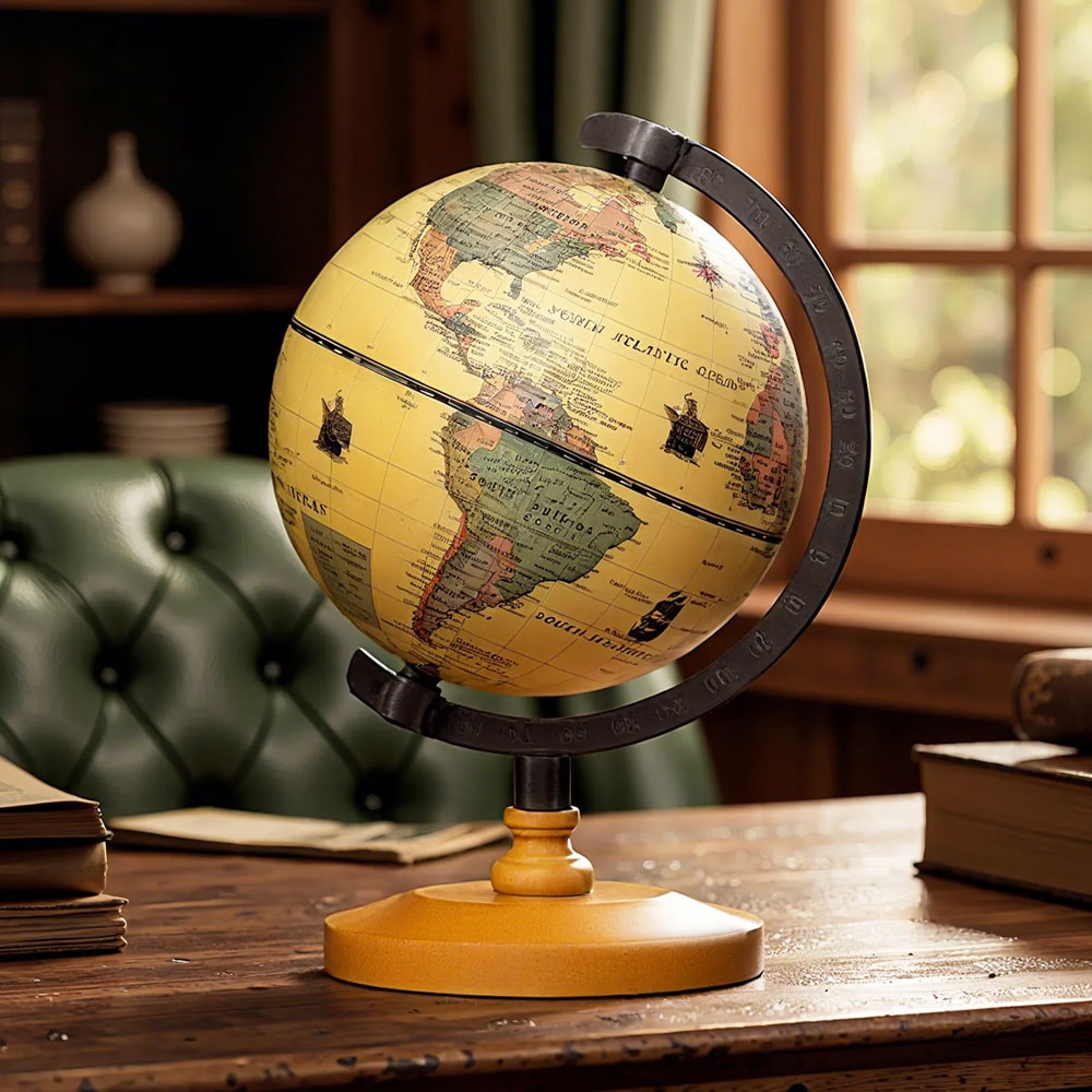Lille globus med træfod 14 cm / klassisk verdenskugle til skrivebordet