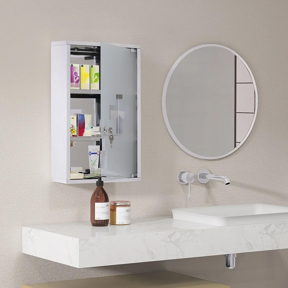 Medicinskab i rustfrit stål / aflåseligt badeværelsesskab / apoteksskab med dør i matteret glas