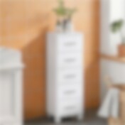Smalt badeværelsesskab med 5 skuffer hvid / opbevaringsskab badeværelse / højskab smalt design