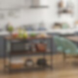 Bagebord / køkkenø med 2 hylder - Rustik brun/Sort