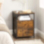 Sengebord med stikkontakt og 2 skuffer - Rustik brun/Sort